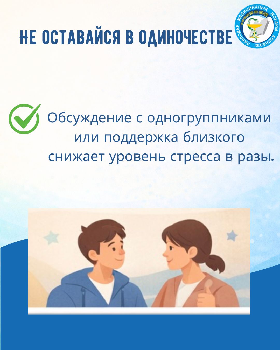 Обсуждение с одногруппниками или поддержка близкого снижает уровень стресса в разы.