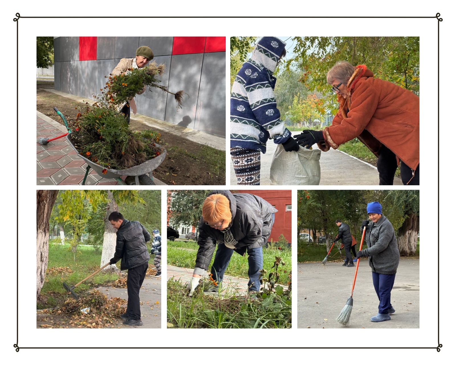 Іс-шара барысында колледж қызметкерлері аумақты жинады: қоқыс пен түскен жапырақтарды жинады, құрғақ бұтақтарды қиды, колледждің ауласын абаттандырды.