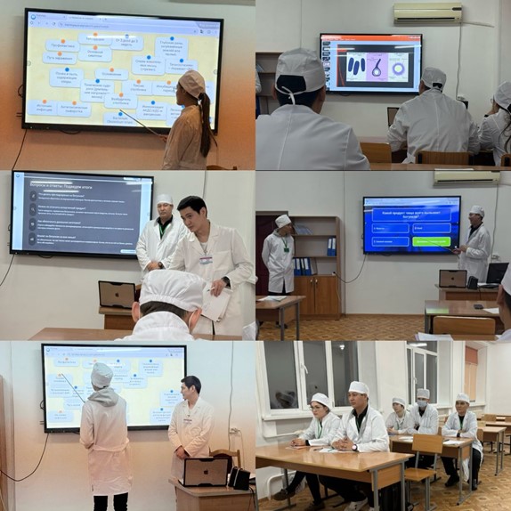 В ходе занятия были раскрыты основные механизмы апоптоза и некроза, их биологическое значение, отличия и роль в развитии патологических процессов. Преподаватель организовала самостоятельную работу студентов, применяя цифровые инструменты «Joyteka»;«Socrative»; «Mentimeter», которые способствовали анализу учебных ситуаций и выполнению заданий. Студенты принимали активное участие демонстрируя понимание ключевых аспектов темы.